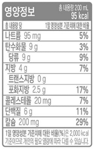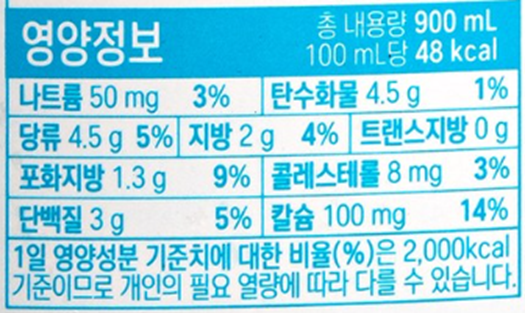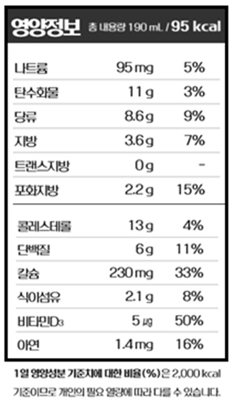 일반우유와 비교해도 크게 차이가 없어요~ 그런데 맛은 참 다른데 말이죠~~